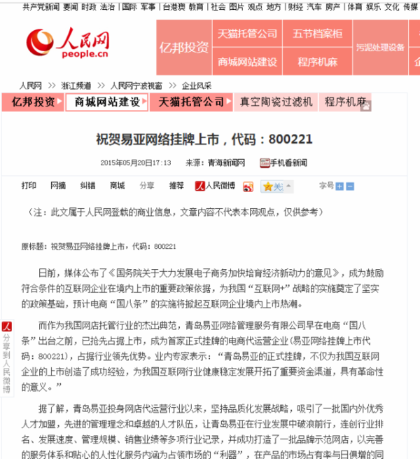 回顾网店托管_淘宝网店代运营_上市公司易亚网店代运营的发展历程: